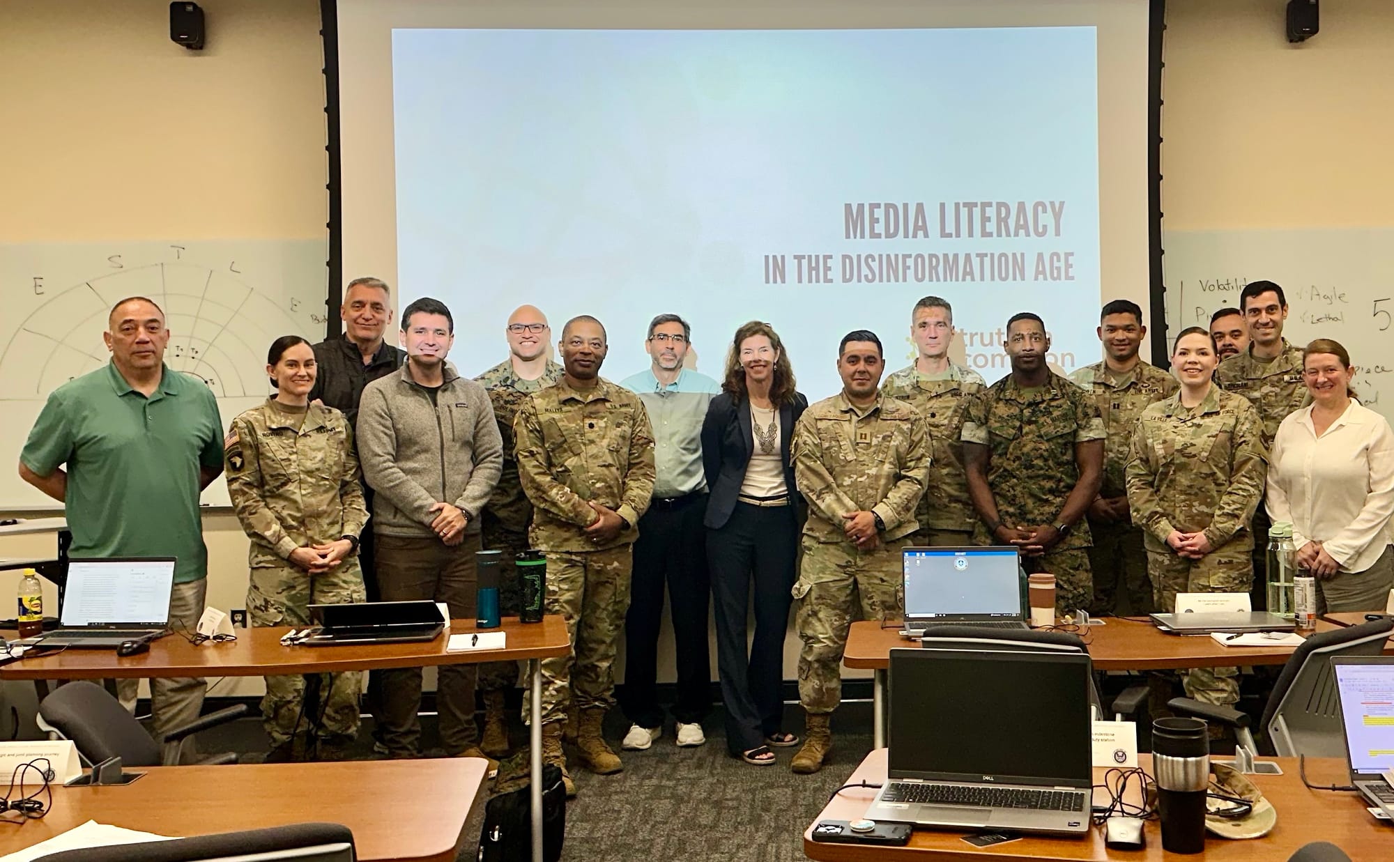 Did you know that military officers are trained to address disinformation and influence operations? I saw this first-hand in May when I spoke at the Defense Information School in Fort Meade, MD, where military public affairs officers receive their training before deploying around the world. It was my first time on base and kind of exciting. Instructor Steve Von Jett, and I compared how we teach about mis- and disinformation in military and civilian classrooms and there were more synergies than I expected. Steve was a public affairs officer in the Army himself and is teaching in his retirement; I feel certain we'll work together again.