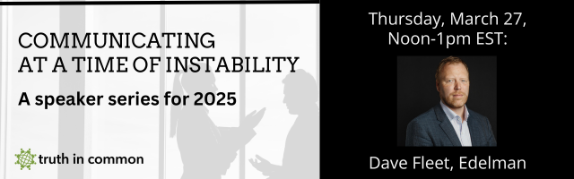 - March 27, noon-1 EST: Dave Fleet, Global Head of Digital Crisis at Edelman. will share why Edelman stood up a Counter Disinformation Unit in 2024, how false narratives are affecting brands around the world and what they're doing about it. Bring your questions as we dive into the realities of information manipulation in 2025. Register here – this talk is just around the corner!