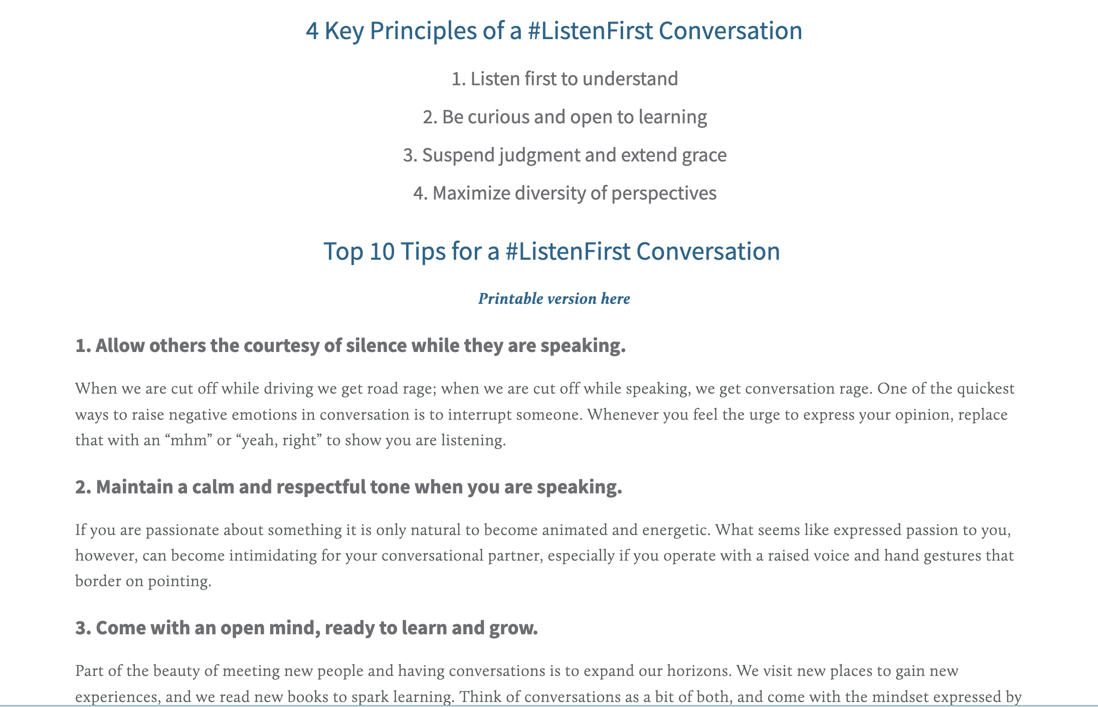 Truth in Common is a member of the ListenFirst Coalition, whose website offers some great tips on the importance of listening, first: